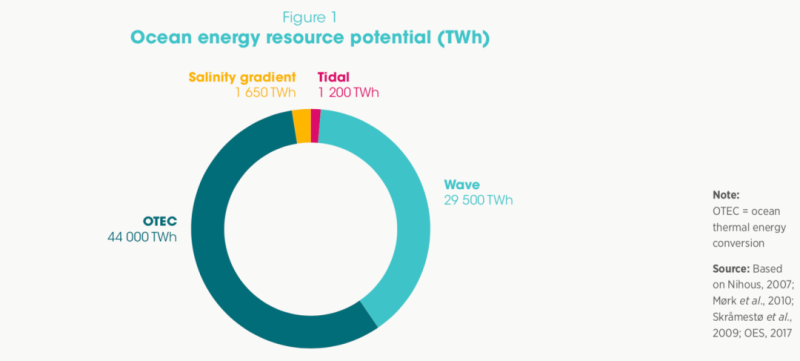 根據(jù)國際可再生能源署(IRENA)的數(shù)據(jù),所有海洋能源技術(shù)的發(fā)電潛力總和為45,000-130,000太瓦時(TWh),這意味著海洋能源可以滿足目前全球電力需求的兩倍以上。