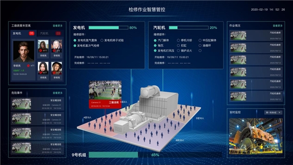 百度智能云的智慧電廠多模態智慧檢修解決方案,具備全感知、全智能、全聯動三大特點。基于百度AI視覺感知技術和語義理解技術等核心能力,智慧電廠多模態智慧檢修解決方案實現對人員識別、體溫識別、核心部件識別等場景元素的全感知。一旦出現設備故障等問題,基于全場景感知能力,智慧檢修系統將第一時間識別出設備及人員的動態,通過三維立體沙盤呈現出可視化、立體化的智能分析結果。同時,檢修人員還可以通過系統獲取AR遠程協助,讓技術專家“親臨指導”,即時指導排除故障,極大提高了電廠檢修效率。