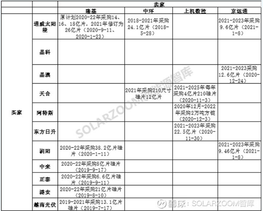 而在210的陣營(yíng)中,最早加入的是中環(huán)、天合、東方日升,天合和東方日升在硅片上幾乎沒(méi)有任何歷史包袱,自然愿意通過(guò)存量硅片廠商所不能實(shí)現(xiàn)的尺寸來(lái)貫徹全行業(yè)的“大尺寸”戰(zhàn)略。而隨著時(shí)間的推移,通威、愛(ài)旭等專業(yè)電池片企業(yè)也逐步加入此陣營(yíng)。通威、愛(ài)旭加入210陣營(yíng)的動(dòng)機(jī)在于:隆基在電池片上的大規(guī)模擴(kuò)產(chǎn)將徹底顛覆通威、愛(ài)旭在電池片上的地位,因此與其加入隆基的182陣營(yíng)而受制于隆基的硅片話語(yǔ)權(quán),不如對(duì)顛覆者進(jìn)行“反顛覆”。于是在2020年7月,210陣營(yíng)先以“600W+”聯(lián)盟的形式出現(xiàn)(“600W+”與210陣營(yíng)還不完全是一個(gè)概念),最終在2020年11月以《關(guān)于推進(jìn)光伏行業(yè)210mm硅片及組件尺寸標(biāo)準(zhǔn)化的聯(lián)合倡議》明確了其主要成員:天合、東方日升、阿特斯、環(huán)晟、通威、潤(rùn)陽(yáng)、中環(huán)、上機(jī)數(shù)控。
