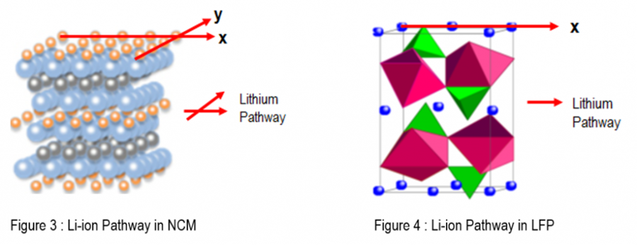 但磷酸鐵鋰化合物從分子結構上相較于鎳鈷錳化合物穩定很多,NCM分子是類似“千層餅”形狀,鋰離子從兩層之間流動,而LFP分子則是“橄欖石”形狀,鋰離子游走于三維結構縫隙中。即LFP分子結構中即便鋰離子“離開”,剩下類似FePo4的結構也相對穩定,而NCM則相對不穩定。(三元鋰電池循環壽命在1500~2000次左右,磷酸鐵鋰則能到4000次左右)
