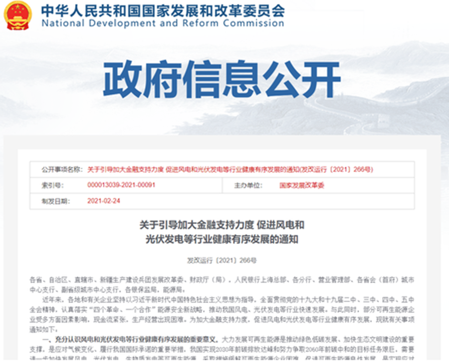 關于引導加大金融支持力度 促進風電和光伏發電等行業健康有序發展的通知