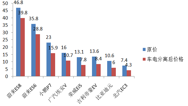 車電分離方案下大幅降低購置成本(萬元)