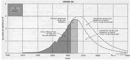 圖1:世界知名的美國地質學家Hubbert1956年畫的石油峰值圖