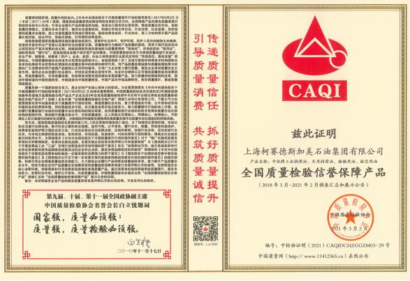 今年的3.15消費(fèi)者權(quán)益保護(hù)日前夕,由國(guó)家市場(chǎng)監(jiān)督管理總局主管的中國(guó)質(zhì)量檢驗(yàn)協(xié)會(huì)向上海柯賽德斯加美石油集團(tuán)有限公司發(fā)出證書,證明該集團(tuán)旗下四大系列產(chǎn)品(中訊牌工業(yè)潤(rùn)滑油、車用潤(rùn)滑油、船舶用油、航空用油)為“全國(guó)質(zhì)量檢驗(yàn)信譽(yù)保障產(chǎn)品”,這是中國(guó)質(zhì)量檢驗(yàn)協(xié)會(huì)連續(xù)3年(2018年3月-2021年2月)的調(diào)查匯總和展示公告。與此同時(shí),中國(guó)質(zhì)量網(wǎng)根據(jù)管理要求,并進(jìn)行了同步在線公告,社會(huì)各界可根據(jù)“中檢協(xié)證明”編號(hào),進(jìn)行查詢和核實(shí)真?zhèn)巍?/p>