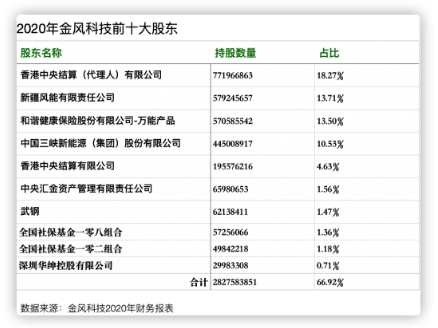 兩大股東的兩次減持后,金風科技前十大股東的股份占比集中度將自2015年以來首次降低。