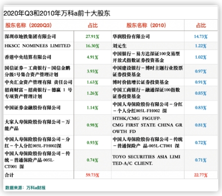 兩家公司的股權均很分散,2020年,金風科技前十大股東的股份占比為66.92%,為歷年最高。2020年前三季度,萬科A前十大股東的股份占比為59.73%。