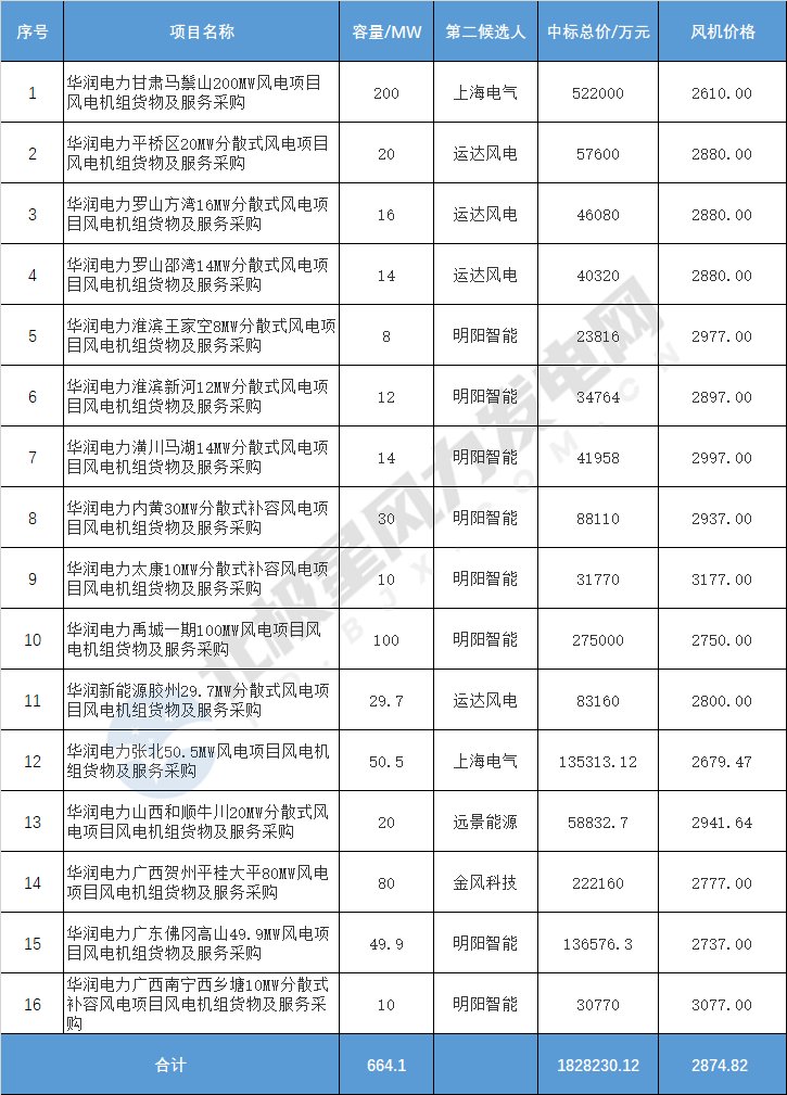 華潤電力664.1MW風(fēng)機采購