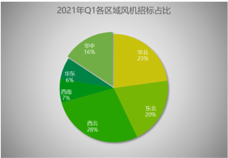 1. 風電重回三北的趨勢已然明朗。從上圖中可看出,一季度,三北風機招標占比高達71%,成為這一輪風電建設的主戰場。