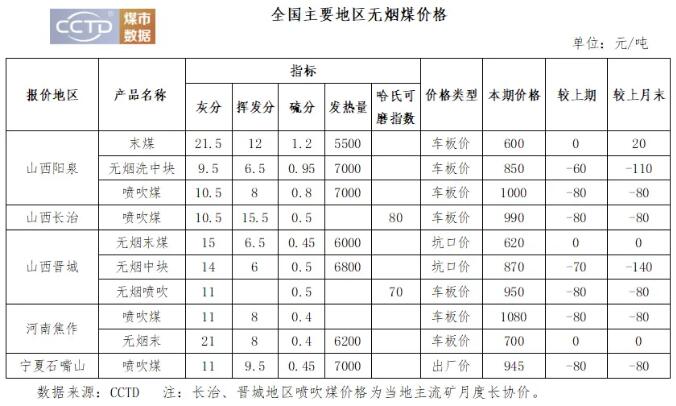 (3)部分市場煤報價零星上漲 無煙噴吹煤短期將震蕩運行