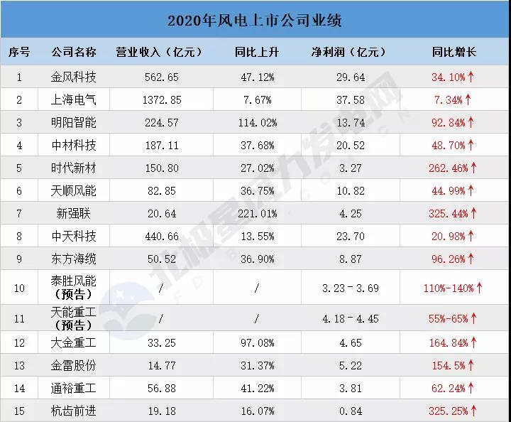 北極星風力發電網此次整理了15家風電企業2020年度業績數據,主要涉及風電整機、零部件設備商。
