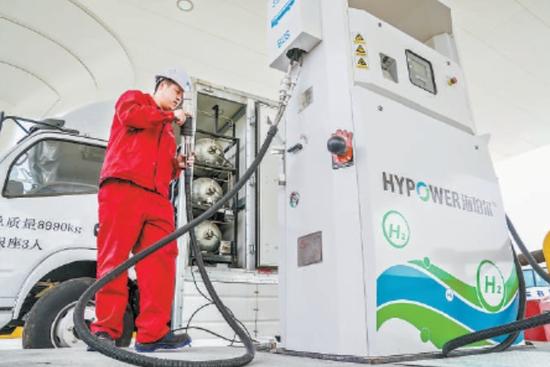 加氫站的氫氣管道,直接與國際氫能示范區的涉氫測試平臺相連,待今年三季度測試平臺建成后,可為園區中小企業提供共享涉氫測試服務,有效降低企業研發成本,助力提高研發創新能力。據介紹,國際氫能示范區重點關注氫燃料電池產業中電堆、雙極板、膜電極、空壓機、質子交換膜、催化劑、碳紙、氫氣循環系統等關鍵零部件環節,以龍頭企業為紐帶,吸引其上下游企業落地發展。現已匯集龍頭企業包括億華通、海珀爾、海德利森等30余家企業。
