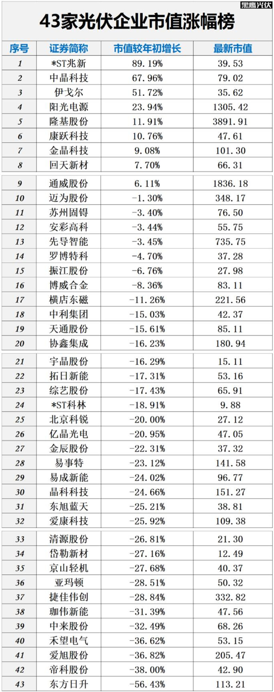 而據(jù)筆者統(tǒng)計,1月初至今,如下表:43家光伏企業(yè)中,15家企業(yè)市值跌幅在23.2%以上,4家企業(yè)市值跌幅在32.8%以上,實控人面臨的質(zhì)押壓力與風(fēng)險不言而喻。