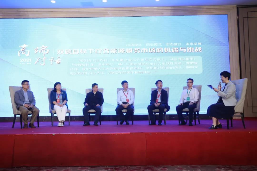 大會同期開展了以“雙碳目標(biāo)下綜合能源服務(wù)市場的機(jī)遇與挑戰(zhàn)” 為主題的高端對話,此環(huán)節(jié)特別邀請了不同類型市場主體的嘉賓代表針對四方面進(jìn)行互動討論,即如何理解 “碳達(dá)峰、碳中和是一場廣泛而深刻的經(jīng)濟(jì)社會系統(tǒng)性變革”;“抓鐵有痕”的含義;“綜合能源”與“新型電力系統(tǒng)的關(guān)系”及從綜合能源服務(wù)業(yè)務(wù)價(jià)值提升和商業(yè)價(jià)值閉環(huán)的角度談?wù)効捶ǖ龋疃绕饰隽?060背景下綜合能源服務(wù)企業(yè)發(fā)展方向及市場前景,給在正在布局綜合能源服務(wù)的從業(yè)者帶來了新思路、新想法,更多的是堅(jiān)定了我們發(fā)展的信心。
