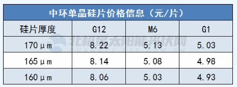 5月31日,中環再次上調硅片價格,其中G12硅片上漲0.45元/片,M6硅片上漲0.28元/片,G1硅片上漲0.33元/片。詳情如下: