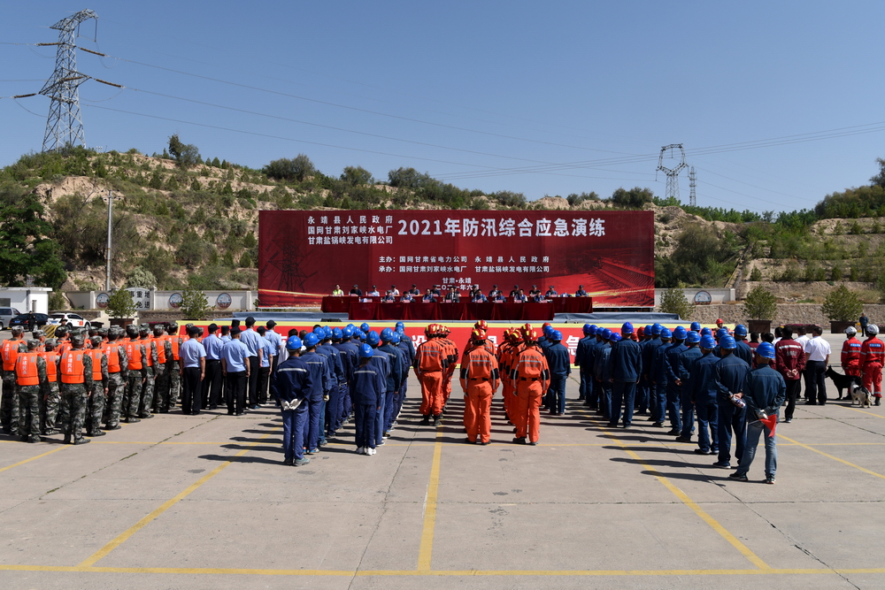 6月4日上午10時,國網甘肅劉家峽水電廠聯合永靖縣人民政府、甘肅鹽鍋峽發電有限公司舉行2021年防汛綜合應急演練。