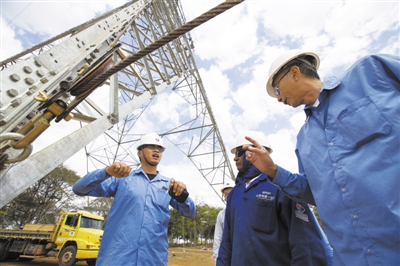 圖為2018年8月7日,在巴西東南部米納斯吉拉斯州阿科斯市附近,美麗山特高壓輸電工程二期第九標段項目施工現場。