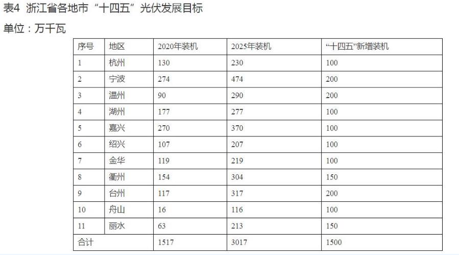 6月23日,浙江省發改委、能源局正式發布《浙江省可再生能源發展“十四五”規劃》(以下簡稱《規劃》),提出大力發展風電、光伏,實施“風光倍增計劃”,繼續推進分布式光伏發電應用,到“十四五”末,力爭浙江省光伏裝機達到2750萬千瓦以上,新增裝機在1200萬千瓦以上,其中分布式光伏新增裝機超過500萬千瓦,集中式光伏新增裝機超過700萬千瓦。