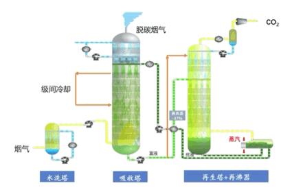 該項目以降低投資和運行成本為關(guān)鍵難點開展技術(shù)研究攻關(guān),研發(fā)了以新型復(fù)合胺為主的吸收劑,兼容相變吸收劑、離子液體的化學(xué)吸收法CO2捕集核心技術(shù),創(chuàng)新集成了"級間冷卻+分流解吸+MVR閃蒸"的新一代節(jié)能工藝,研制了低成本、高親水性塑料填料吸收塔與高效率超重力反應(yīng)器,實現(xiàn)了煙氣CO2高效率、低能耗捕集吸收。