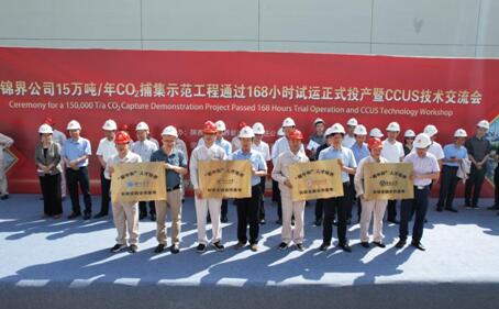 2021年6月25日上午, 國家能源集團(tuán)國能錦界公司建設(shè)的"15萬噸/年燃燒后CO2捕集示范工程"一次通過168小時滿負(fù)荷試運正式投產(chǎn),并成功舉辦CCUS技術(shù)交流會。陜西省及榆林市政府部門、國內(nèi)知名科研院所、國家能源集團(tuán)領(lǐng)導(dǎo)、參建單位等共同見證了工程的正式投產(chǎn),與會領(lǐng)導(dǎo)專家發(fā)表現(xiàn)場致辭并就后續(xù)工程的連續(xù)運行提出建議。