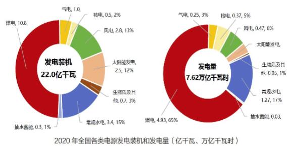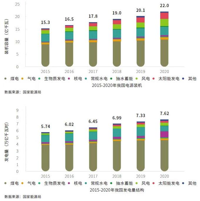 《中國電力發(fā)展報(bào)告2020》指出,“十三五”期間,我國電力裝機(jī)結(jié)構(gòu)持續(xù)優(yōu)化,電力工業(yè)綠色低碳轉(zhuǎn)型成效顯著。截至2020年底,非化石能源消費(fèi)比重達(dá)到15.9%,超額完成“十三五”規(guī)劃目標(biāo);非化石能源裝機(jī)達(dá)到9.8億千瓦,占全國發(fā)電總裝機(jī)的45%;水電(含抽蓄)裝機(jī)達(dá)到3.7億千瓦;風(fēng)電、太陽能合計(jì)裝機(jī)達(dá)5.3億千瓦,生物質(zhì)發(fā)電裝機(jī)超過2700萬千瓦,均超額完成“十三五”規(guī)劃目標(biāo)。