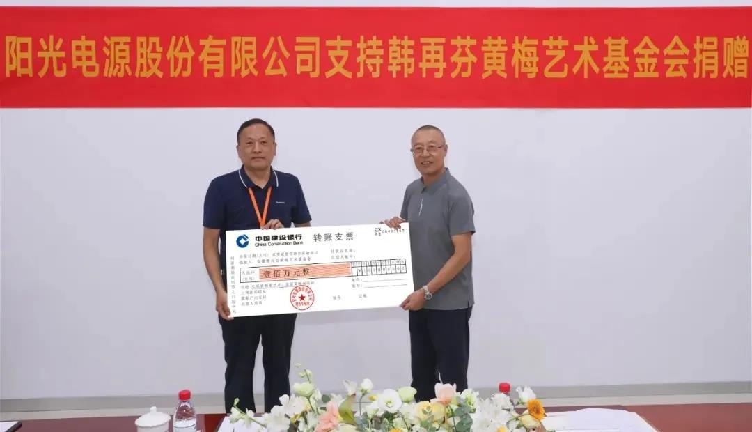 日前,陽光電源向安徽韓再芬黃梅藝術基金會捐贈100萬元。著名黃梅戲表演藝術家韓再芬出席捐贈儀式,對陽光電源扶助傳統文化、積極踐行社會責任的行動表示感謝和欽佩,并表示將用好捐贈資金,努力推動黃梅戲創新與發展。