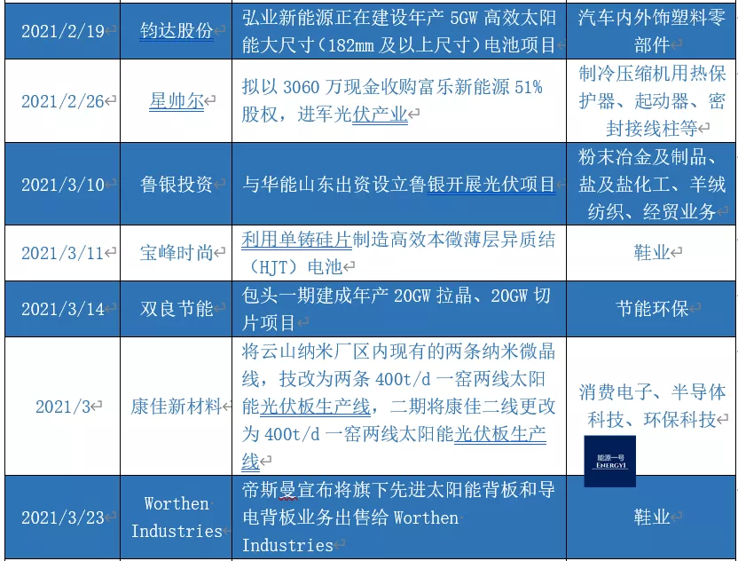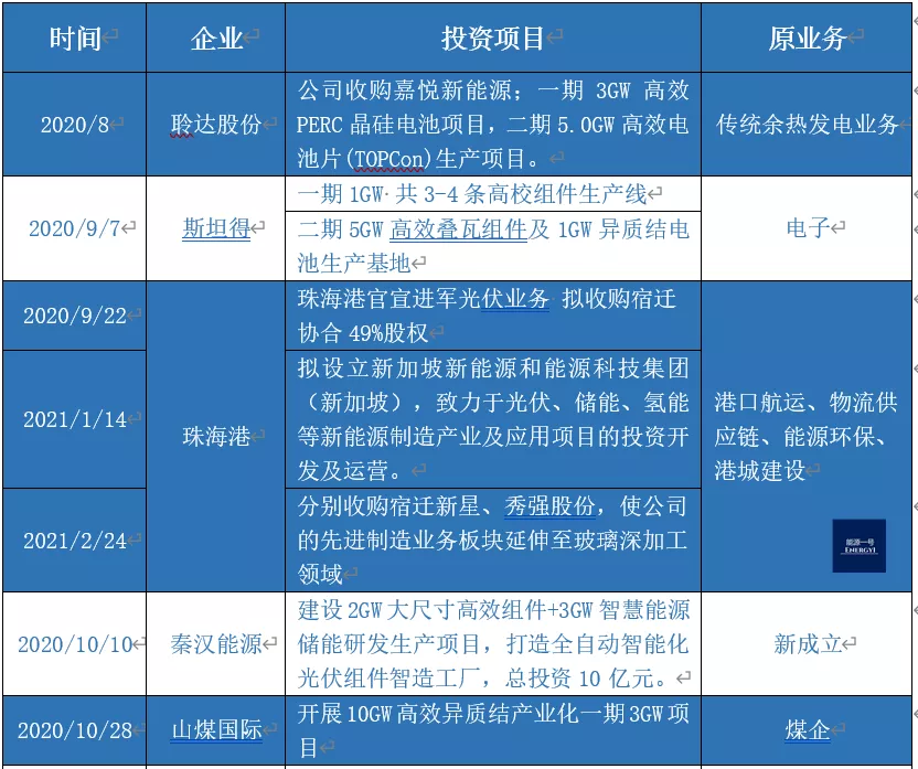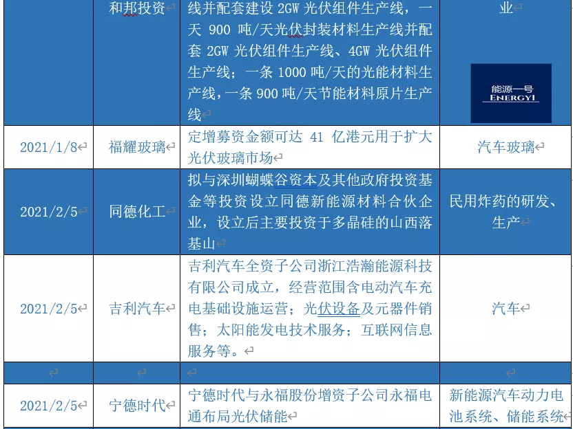 碳中和、碳達峰的目標確定,讓世界看到了中國光伏產業的巨大潛力,也讓敏銳的商人們嗅到了商機。能源一號對去年以來一些重大的新投資進行盤點,發現不少公司正在進入這個蒸蒸日上的行業,同樣,產業之間的競爭也將更為白熱化。