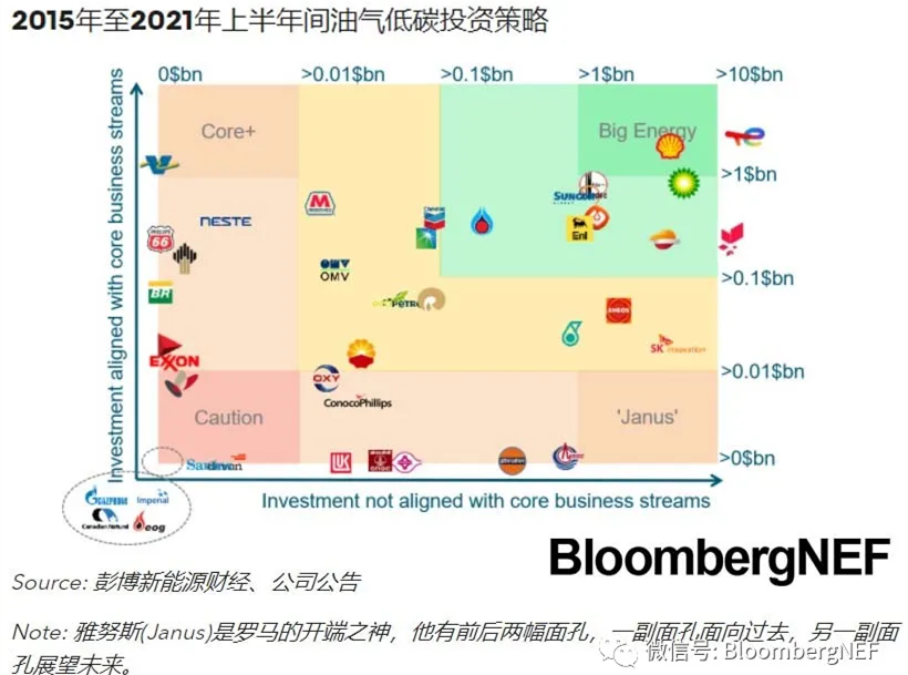 一些公司在2021年上半年加快了對能源轉型的投入。道達爾能源、Neste、Galp、BP和Marathon Petroleum的表現超出對手,2021年上半年間低碳投資在整體投資中占比較2015年至2020年整體水平高出20%。