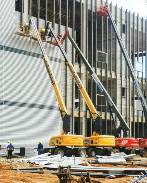 “福鼎時代一期項目體量大,工期緊張,設備臺量需求多,設備資源的供給與調配是我們本次項目服務的重要支撐,除本地倉外設備齊出動外,另從福州、廈門、溫州、寧波等地調撥設備資源,累計提供曲臂車、直臂車、蜘蛛車、剪叉車等設備1134臺。”眾能聯合項目負責人表示。為保障工期,眾能聯合服務團隊根據每項工程的具體情況提前2-3天安排設備運輸,保障設備準時進場施工。