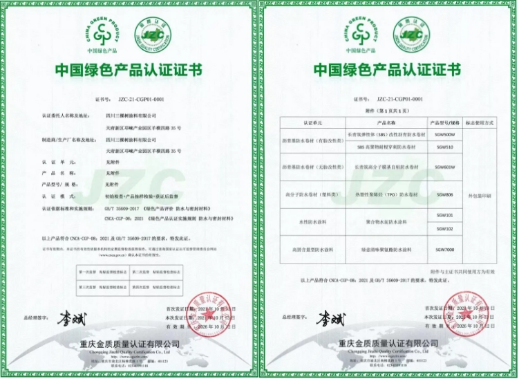 此次七類產品榮獲“中國綠色產品認證”不僅是對三棵樹防水產品的認可,更是對三棵樹防水自主研發、綠色創新能力的肯定。自2020年發布水性聚氨酯防水涂料,開創“油改水”新時代后;2021年,三棵樹防水先后推出利用可再生生物能源的綠意凈味系列植物油聚氨酯防水涂料、綠意清味硅烷改性多用涂防水涂料、熱塑性聚烯烴(TPO)防水卷材等環保防水材料,積極響應國家“碳達峰”與“碳中和”政策。