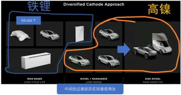 隨著特斯拉的戰(zhàn)略更新,我們能看到磷酸鐵鋰的應(yīng)用快速突破了現(xiàn)有的Power wall和Model Y。目前長(zhǎng)距離的車型也開始往高鎳的電池方向走。