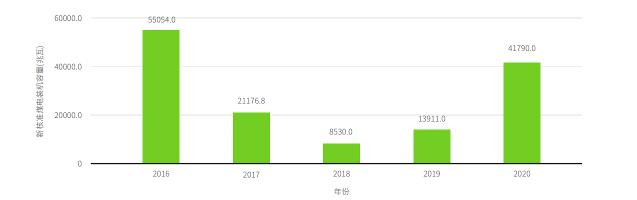 在已推進的煤電項目中,有2857兆瓦項目在2020年獲得發改委核準后于2021年投入運行。在如此短的時間之內即可投入運行,其主要原因是此類項目為此前未批先建項目或在建設期間曾被列入停建名單的項目,后補齊手續在去年由發改委核準通過。