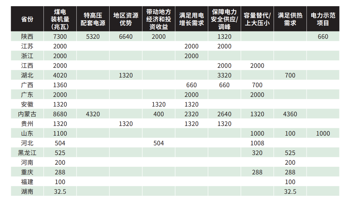 總體來看,煤電項目規劃建設的目的較為清晰,但東西部省份新建煤電項目的理由存在互相排斥的地方。西部項目通常將發展“地區資源優勢”和“西電東送”等配套長距離特高壓直流通道發電作為新建煤電的主要目的,而在東部省份,新建煤電的理由則強調了需增加本地自供能力,以減少省際間的大功率交換和有效降低電網運行的成本。由此可見,各省對于省際電網互濟和形成全國互聯電網的理解尚需澄清和統一。另外,在目前全國加快低碳發展、產業清潔轉型升級的趨勢下,部分以“帶動地方經濟“和”增加投資收益“為理由新建煤電項目的省份,還需對項目的投資收益進行合理判斷,評估和審視新建煤電項目的必要性。