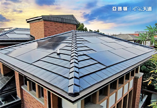 近日,亞瑪頓(SZ:002623)與天道建材聯合發布了一款美學光伏屋面瓦產品。據介紹,該產品具有安全、美觀、節能、健康等優勢,同時安裝方便,質保期長,可以為用戶帶來更可靠的高收益。