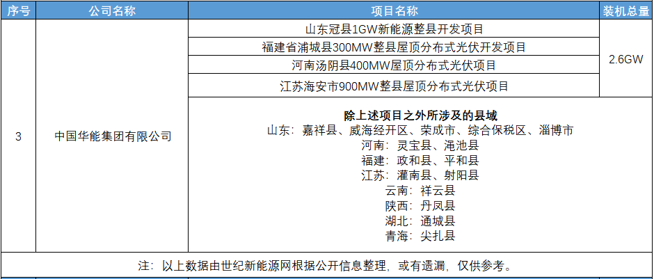 8月4日,山東分公司聊城熱電廠與山東冠縣簽署整縣新能源開發(fā)項目,共同推進冠縣境內(nèi)總?cè)萘?GW的集中式光伏、分布式光伏及綜合能源項目的開發(fā)建設(shè);9月8日,華能福建分公司在福建省浦城縣簽署300MW整縣分布式項目;10月29日,華能河南分公司在河南湯陰縣簽署400MW整縣分布式項目,總投資約20億元;11月12日,華能集團江蘇公司與海安市國有資本運營集團有限公司在南通簽訂海安整縣屋頂分布式光伏建設(shè)運營合作協(xié)議,項目規(guī)劃建設(shè)容量約900MW。