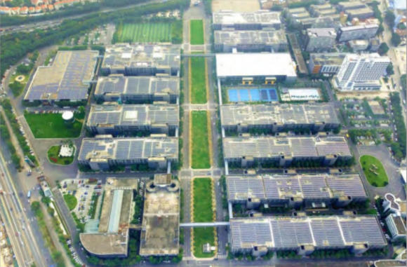 該項(xiàng)目建設(shè)總面積約為6.5萬平方米,光伏組件安裝在園區(qū)各建筑屋頂上。年發(fā)電量約660萬度,相當(dāng)于燃燒2574噸標(biāo)準(zhǔn)煤發(fā)出的電量,即可減排6692噸二氧化碳、62噸二氧化硫、18噸氮氧化合物,相當(dāng)于種植53539棵樹木。此外,電站所發(fā)電量優(yōu)先美的全球創(chuàng)新中心自用,極大地降低了用電成本;多余電量以0.45元/度賣南方電網(wǎng),獲得額外喜人的經(jīng)濟(jì)收入,還能享受佛山地方政府的光伏補(bǔ)貼政策。由于環(huán)保效益和經(jīng)濟(jì)效益突出,該項(xiàng)目被評為“廣東省智能光伏應(yīng)用示范項(xiàng)目”。