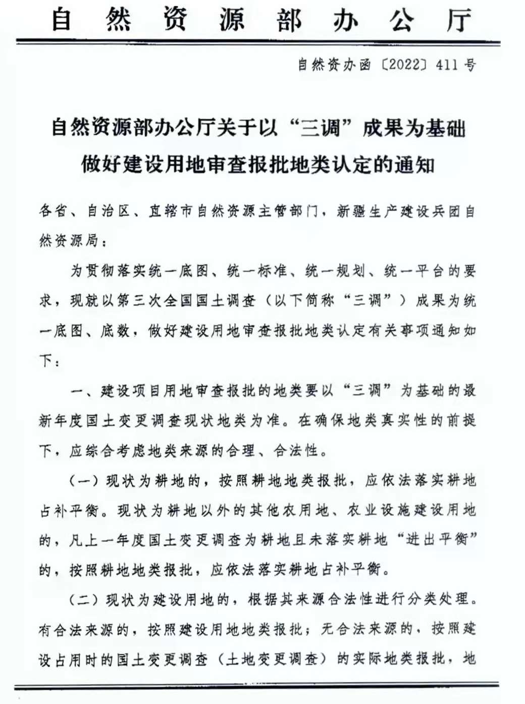 自然資源部辦公廳關(guān)于以"三調(diào)"成果為基礎(chǔ)做好建設(shè)用地審查報(bào)批地類(lèi)認(rèn)定的通知