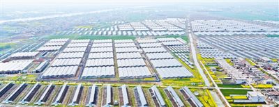 圖為3月26日,蒙城縣花園村的光伏大棚在田間整齊排列。