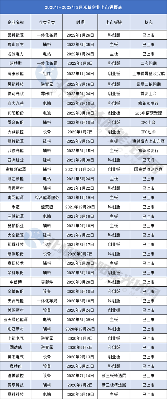 • 光伏企業上市鐘聲敲不停,這25家會師A股、12家上市進行時