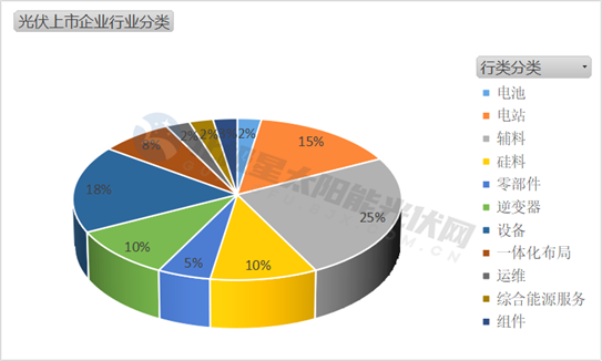可以發現的是,這些企業基本涵蓋光伏整個產業鏈,包括10家輔材企業,占比最多達26%;7家設備企業,占比18%;6家電站開發企業,占比15%;3家硅料企業、4家逆變器企業、3家一體化布局企業、2家零部件企業、電池企業、運維服務企業、綜合能源服務企業以及組件企業各一家。