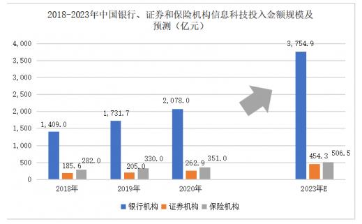 近幾年,我國金融行業持續加大數字化轉型投入力度,與之對應的信息科技投資規模呈逐年增長趨勢,具體情況如下: