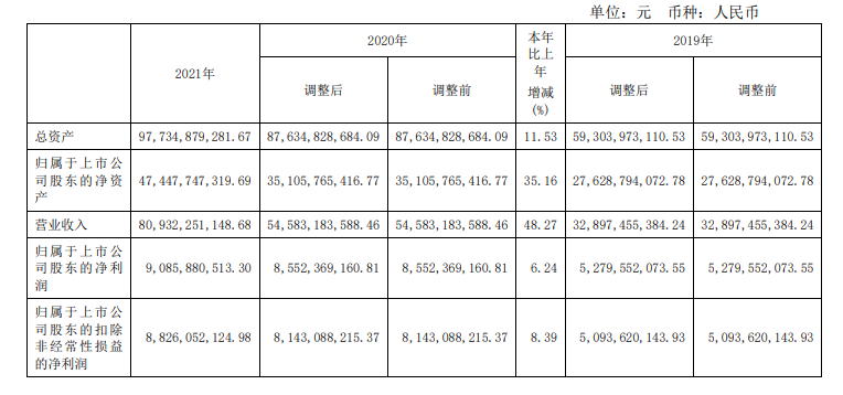 隆基股份2021年年報數(shù)據(jù)顯示:報告期內(nèi),公司實現(xiàn)營業(yè)收入809.32億元,同比增長48.27%;實現(xiàn)歸屬于上市公司股東的凈利潤90.86億元,其中歸屬于上市公司股東的扣除非經(jīng)常性損益的凈利潤88.26億元;綜合毛利率20.19%,資產(chǎn)負債率為51.31%降8.07個百分點。隆基股份表示,2022年計劃實現(xiàn)營業(yè)收入超過1000億元。