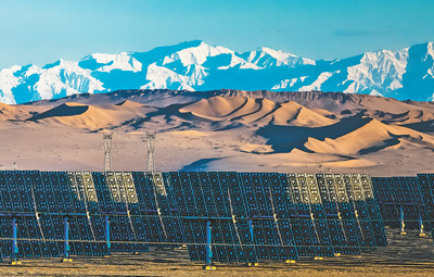 敦煌市光電產(chǎn)業(yè)園區(qū)是甘肅省集中連片面積最大的光電產(chǎn)業(yè)園區(qū),也是國(guó)家批準(zhǔn)的首個(gè)百萬(wàn)千瓦級(jí)太陽(yáng)能光伏發(fā)電基地。發(fā)電站通過(guò)聚光吸熱、儲(chǔ)能換熱等環(huán)節(jié)利用光熱發(fā)電,為當(dāng)?shù)爻掷m(xù)輸送清潔能源。
