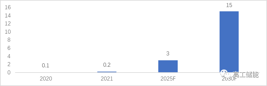2020-2030年國內液流電池累計裝機規模(GW)