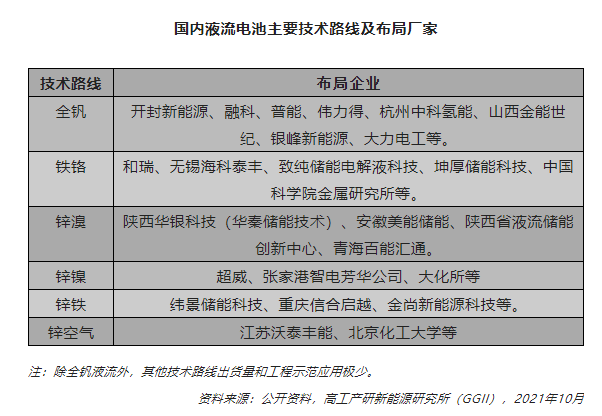2)技術路線具有較明顯的偏向,以商業化程度最高的全釩液流電池為主;