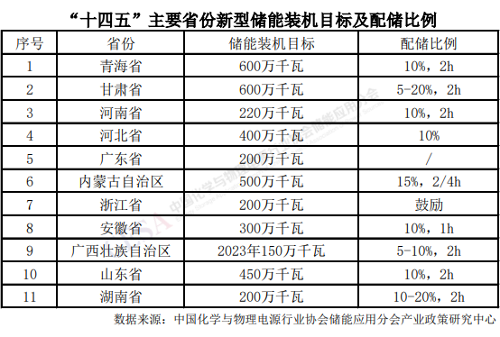 • 全國多省市確定“十四五”新型儲能裝機目標