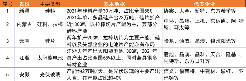 隨著光伏上游新增產能的陸續落地,上游制造格局則已經成型,硅料、硅片產能未來將主要聚集于新疆、內蒙、云南等地。