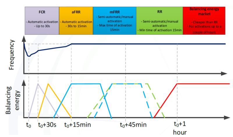 另一個是頻率控制服務FCR,PCR一次調頻可以看作是輔助服務階梯的第一級。FCR中的資產在接收到電網信號后 30 秒內對電網上的短期頻率不平衡作出反應,(二級調頻目標是覆蓋15 分鐘)。