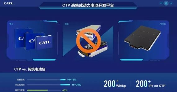 而CPT(cell to pack)就是將電芯直接集成到電池包。由于省去了電池模組組裝環(huán)節(jié),電池包零部件數(shù)量減少40%,CTP電池包體積利用率提高了15%-20%,生產(chǎn)效率提升了50%,大幅降低動(dòng)力電池的制造成本。