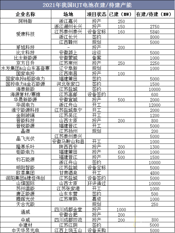 近年來,國內已有多家企業積極布局HJT,產業規模持續擴張。