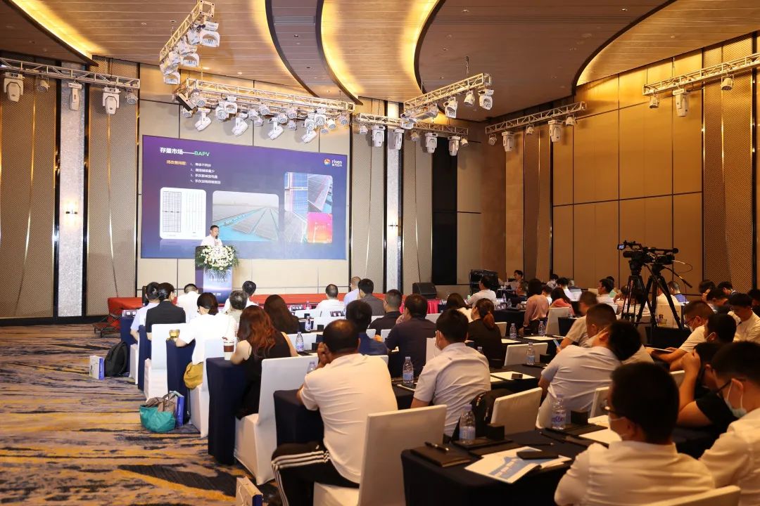 好的市場更需要好的產品。東方日升BIPV總經理廉軍建在隨后的演講中對東方日升超能頂、超能瓦BIPV解決方案優質性進行了深入淺出介紹。深耕建筑光伏領域多年,廉軍建綜合建筑光伏市場產品的市場發展、技術路線、施工制造等方面的講解讓在場觀眾眼前一亮。